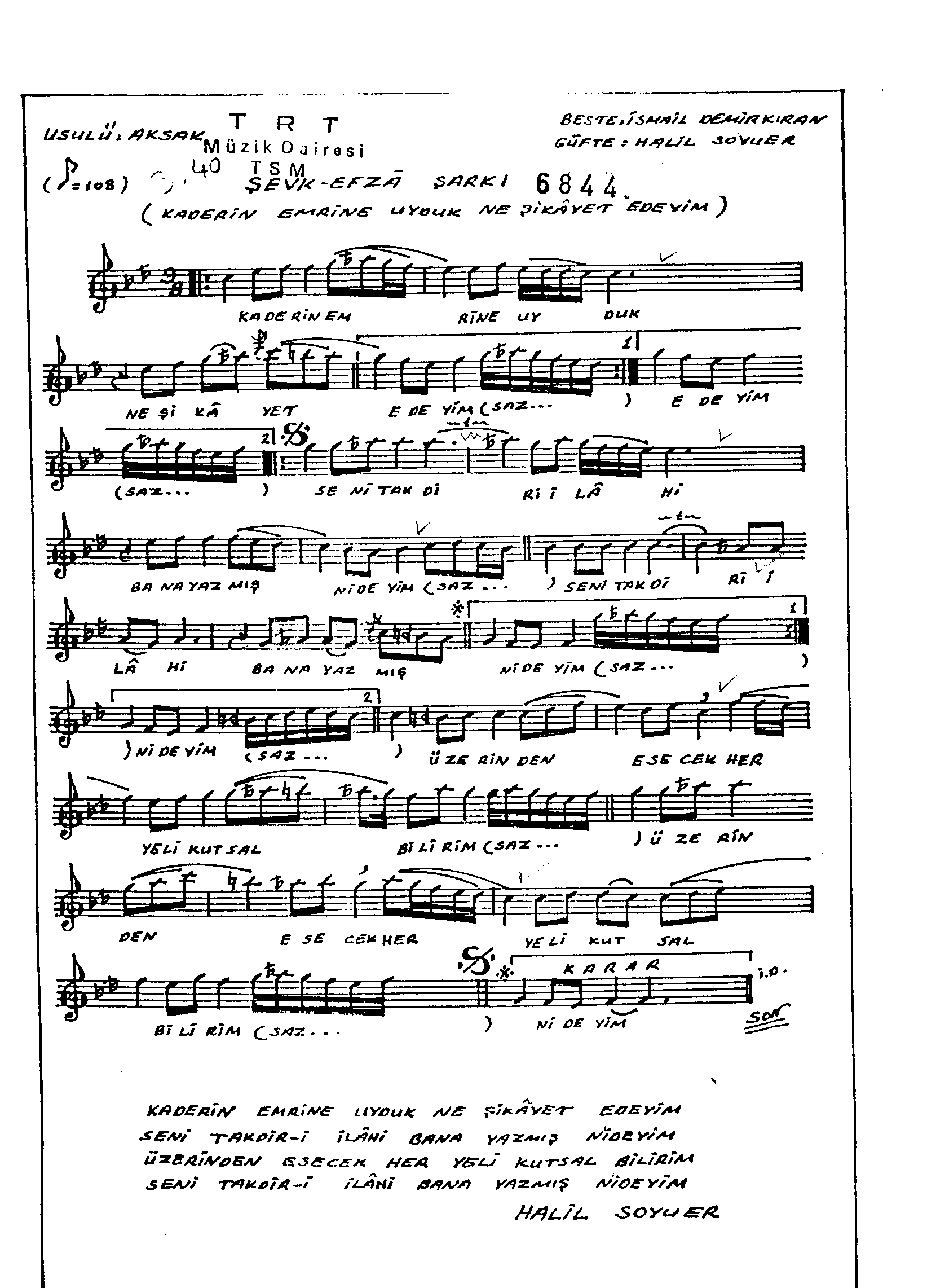 Kaderin emrine uyduk ne şikâyet edeyim