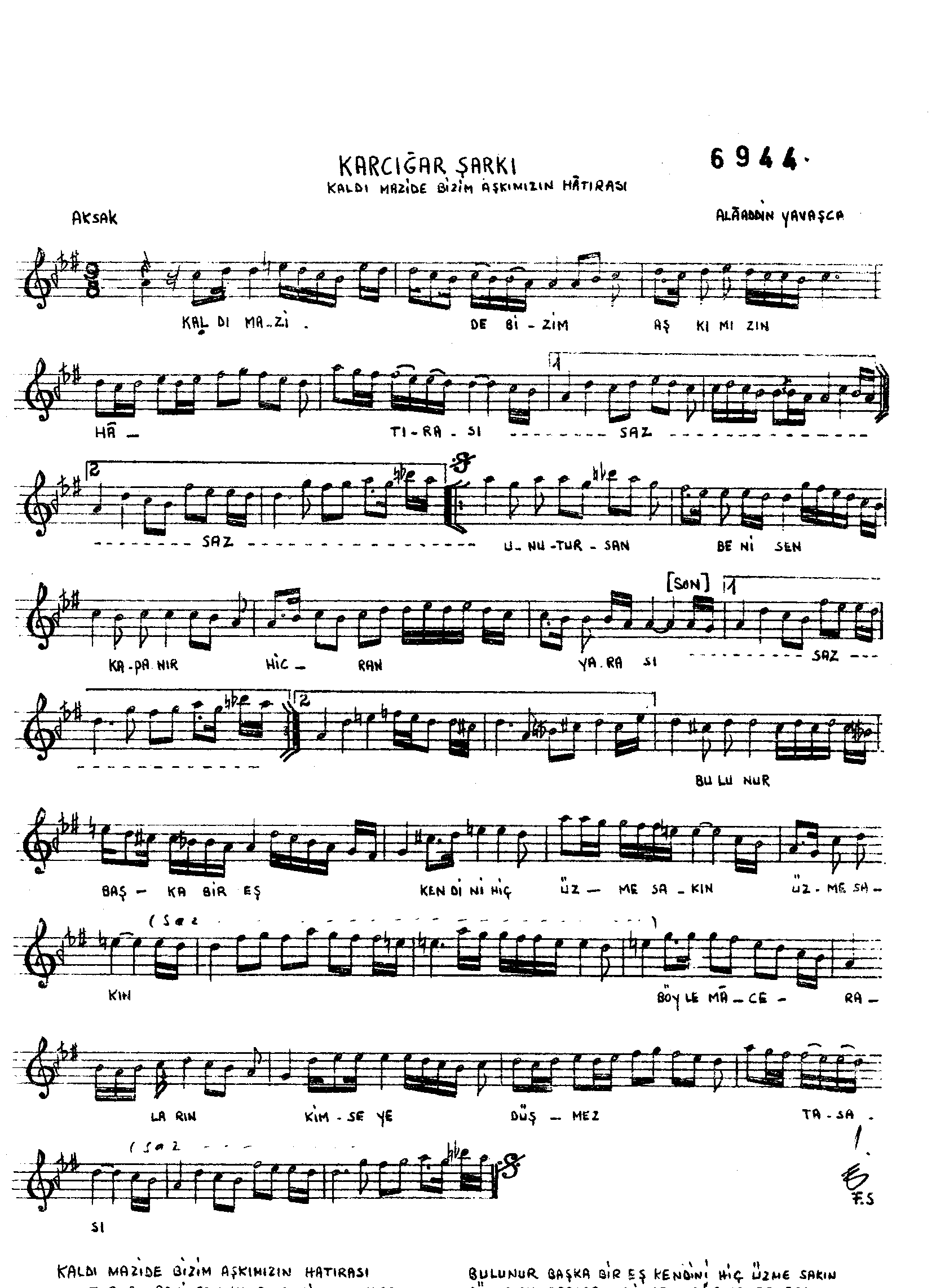Sarki Adi: Kaldı mâzide bizim aşkımızın hâtırası