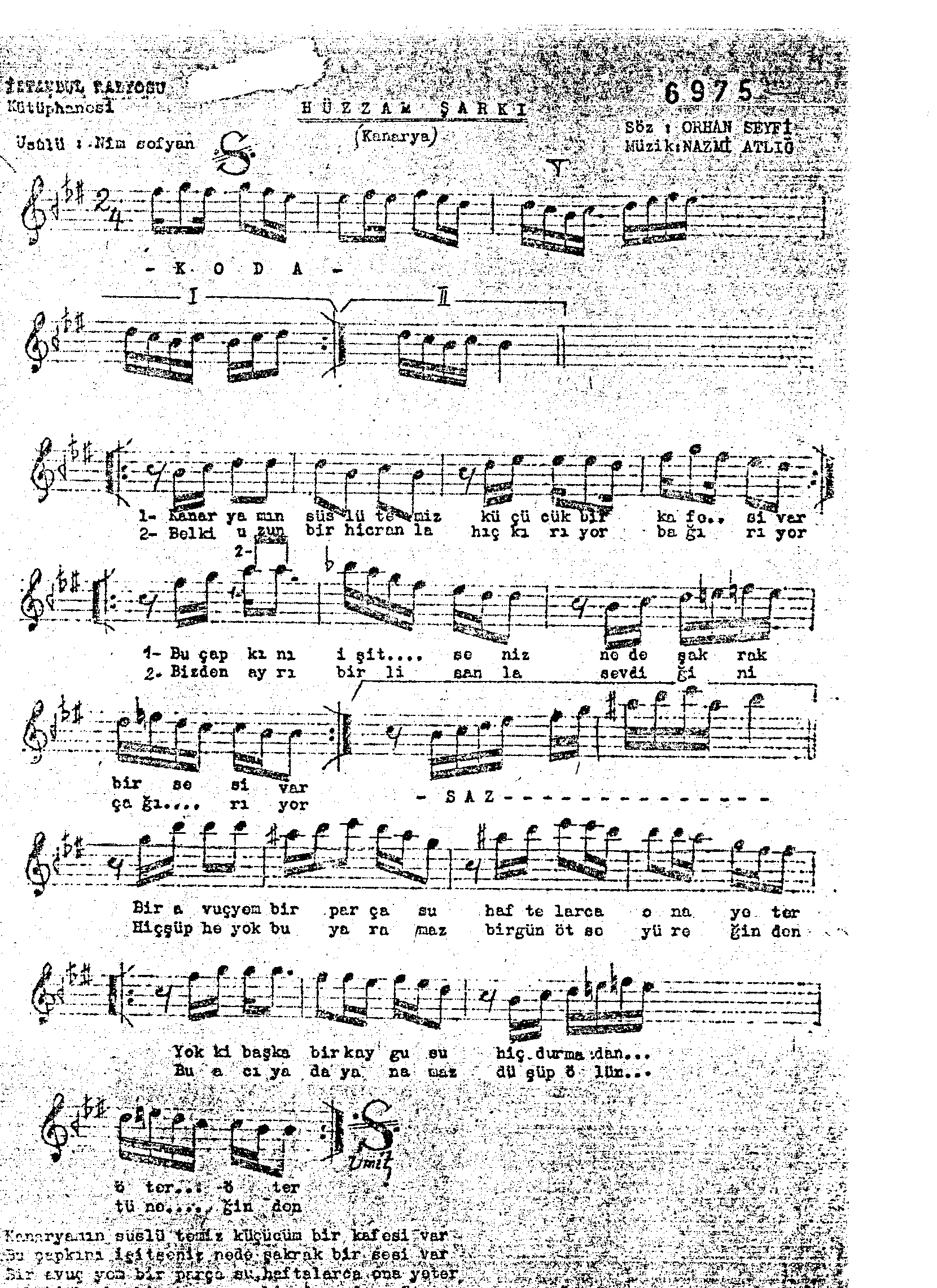 Sarki Adi: Kanaryamın süslü temiz küçücük bir kafesi var