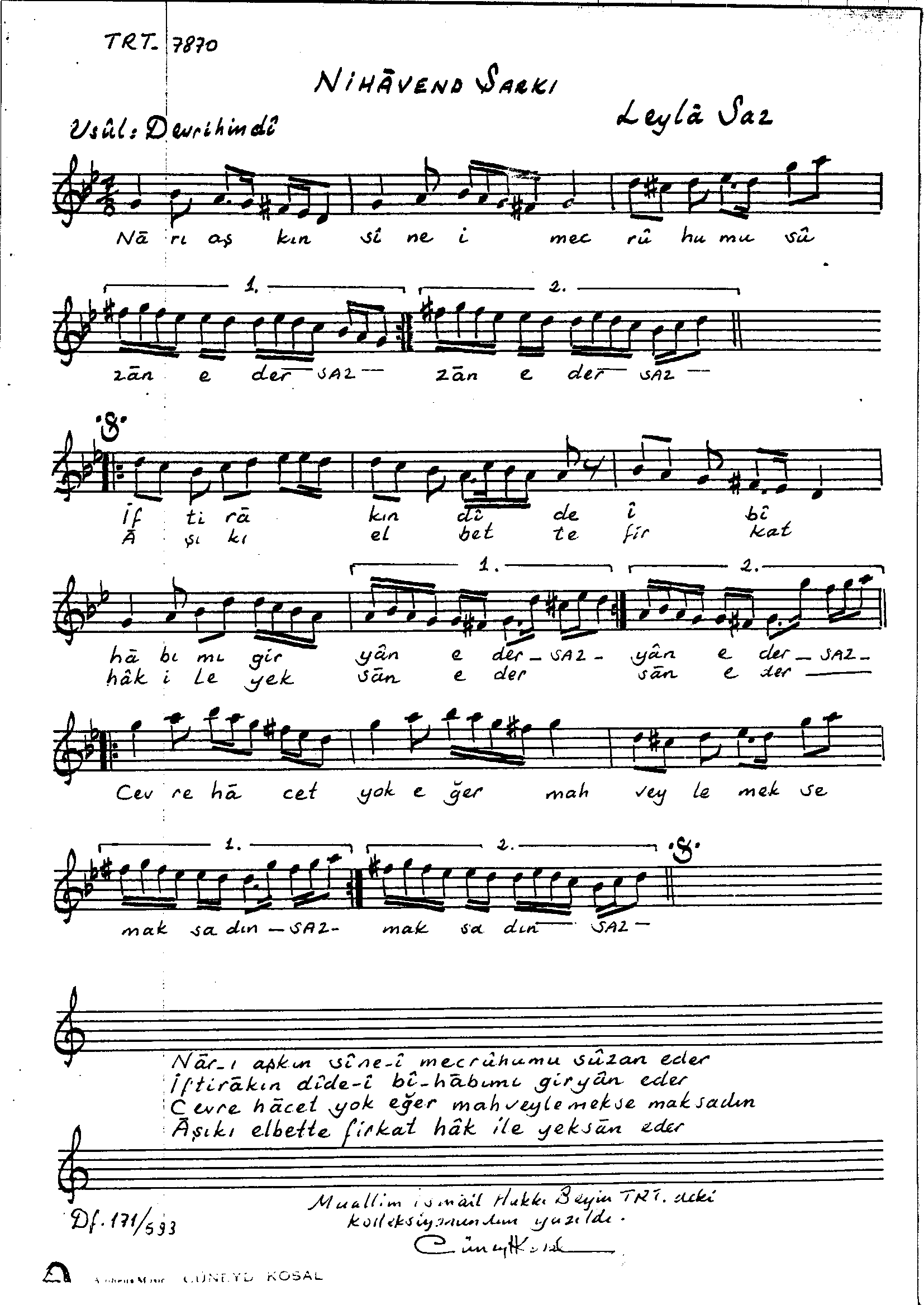 Sarki Adi: Nâr-ı aşkın sîne-i mecrûhumu sûzan eder
