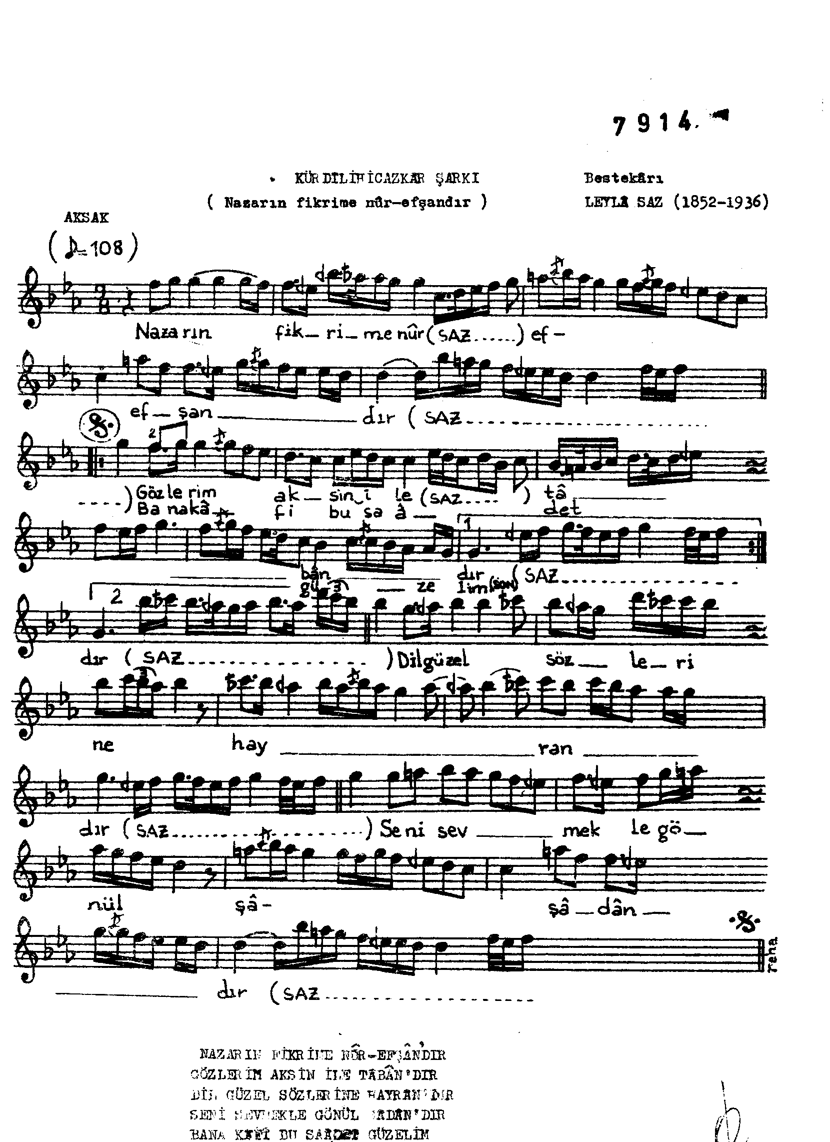 Sarki Adi: Nazarın fikrime nûr-efşândır