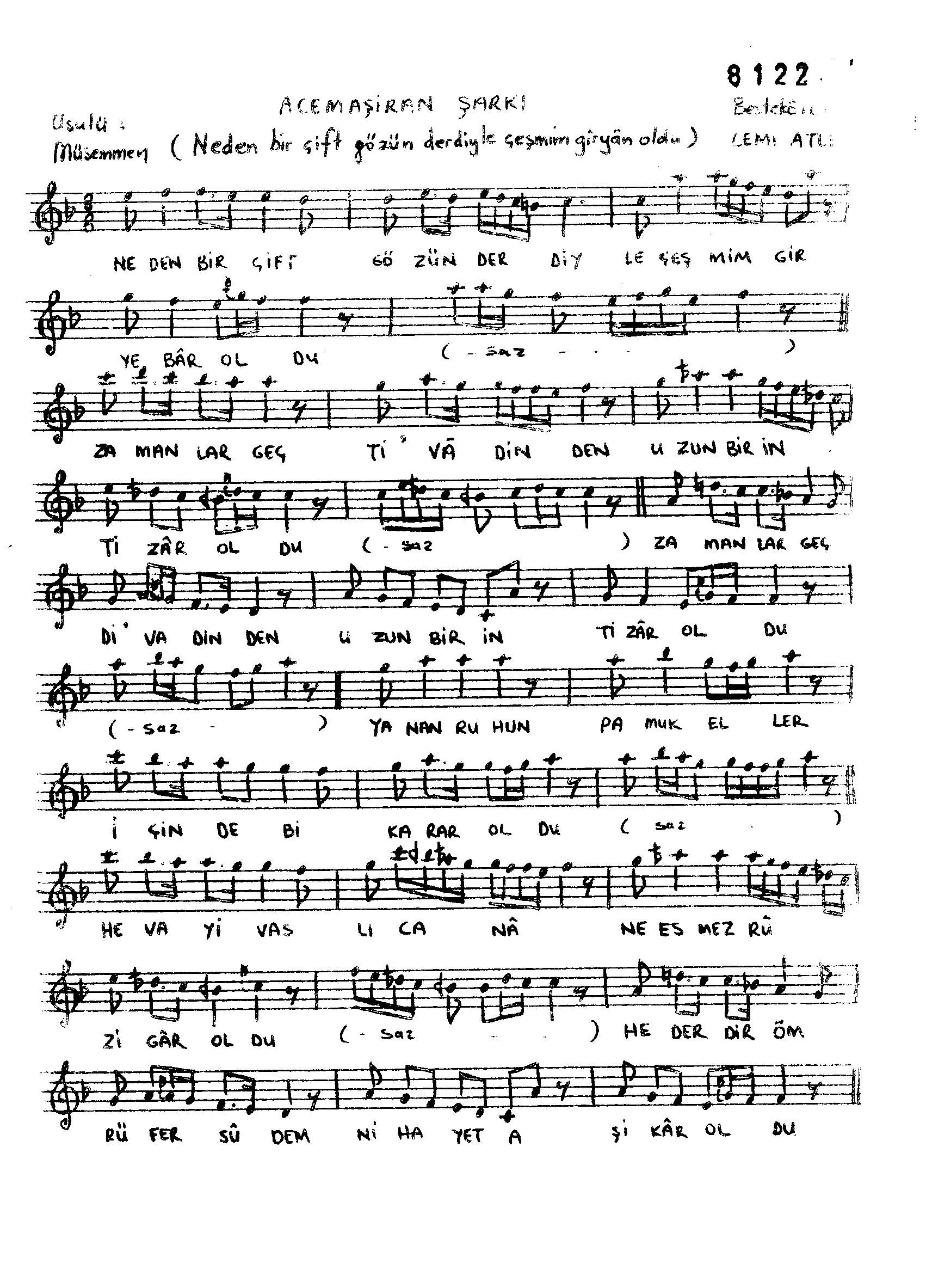 Sarki Adi: Neden bir çift gözün derdiyle çeşmim giryebâr oldu