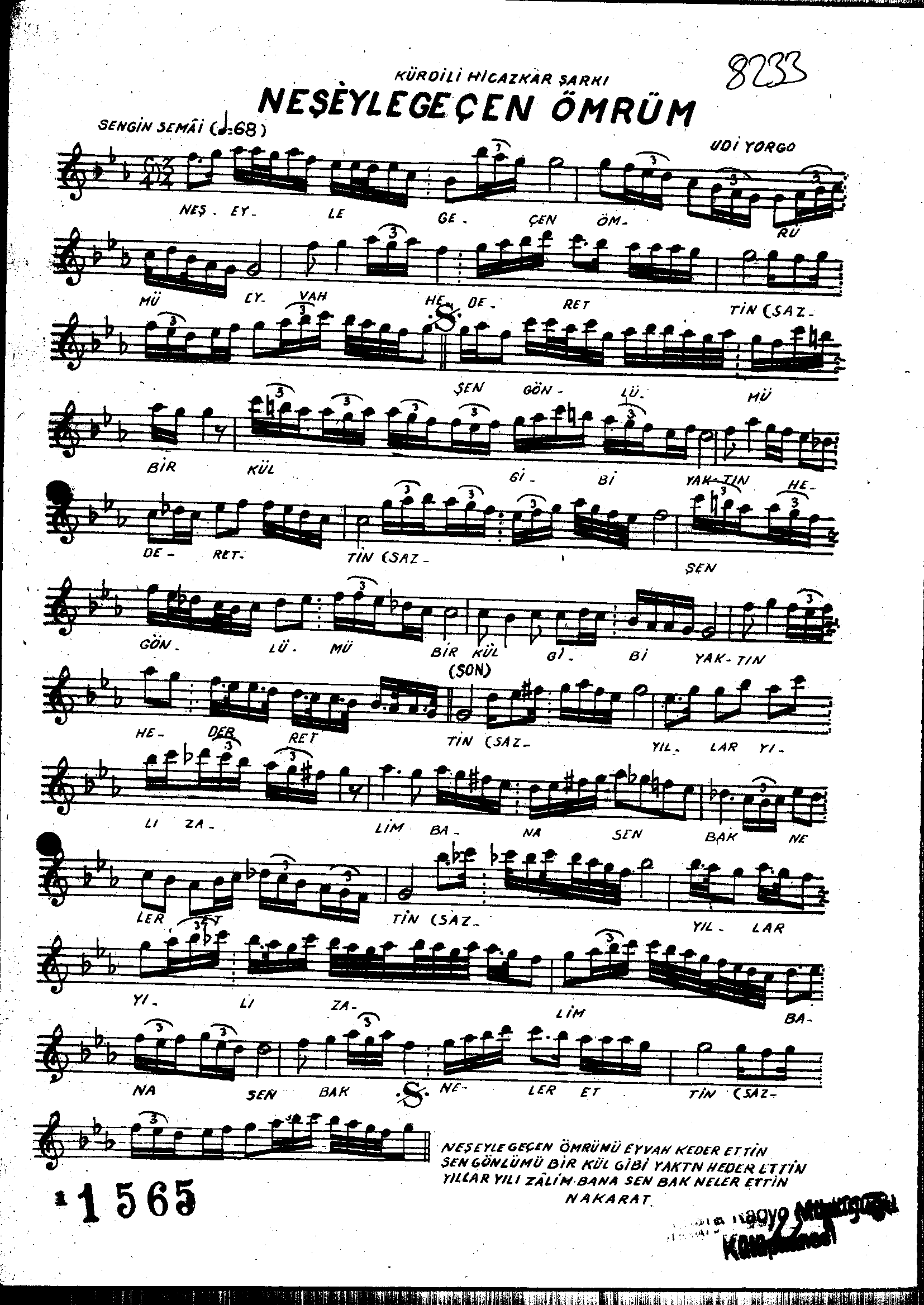 Sarki Adi: Neş'eyle geçen ömrümü eyvâh keder ettin