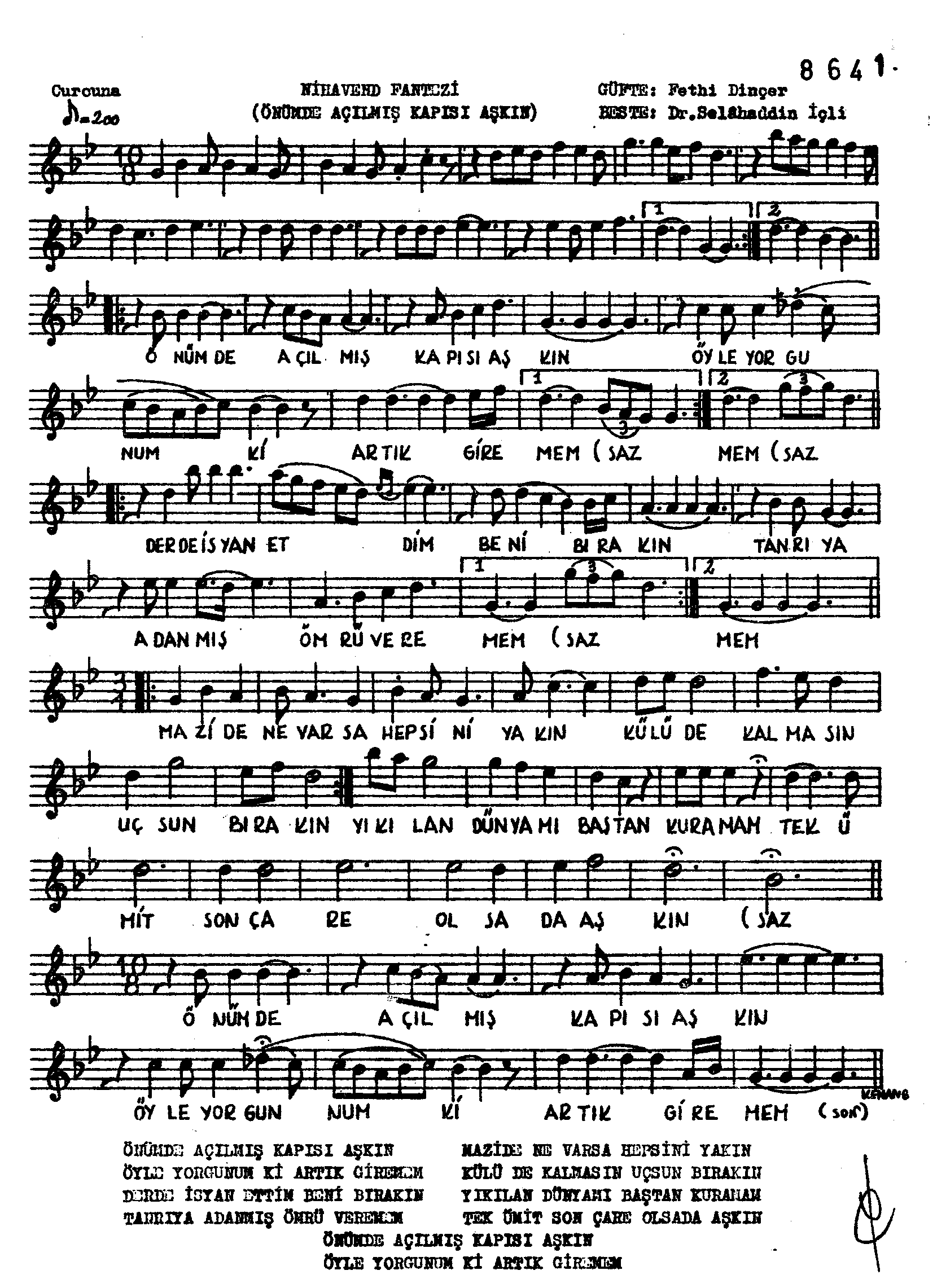 Sarki Adi: Önümde açılmış kapısı aşkın