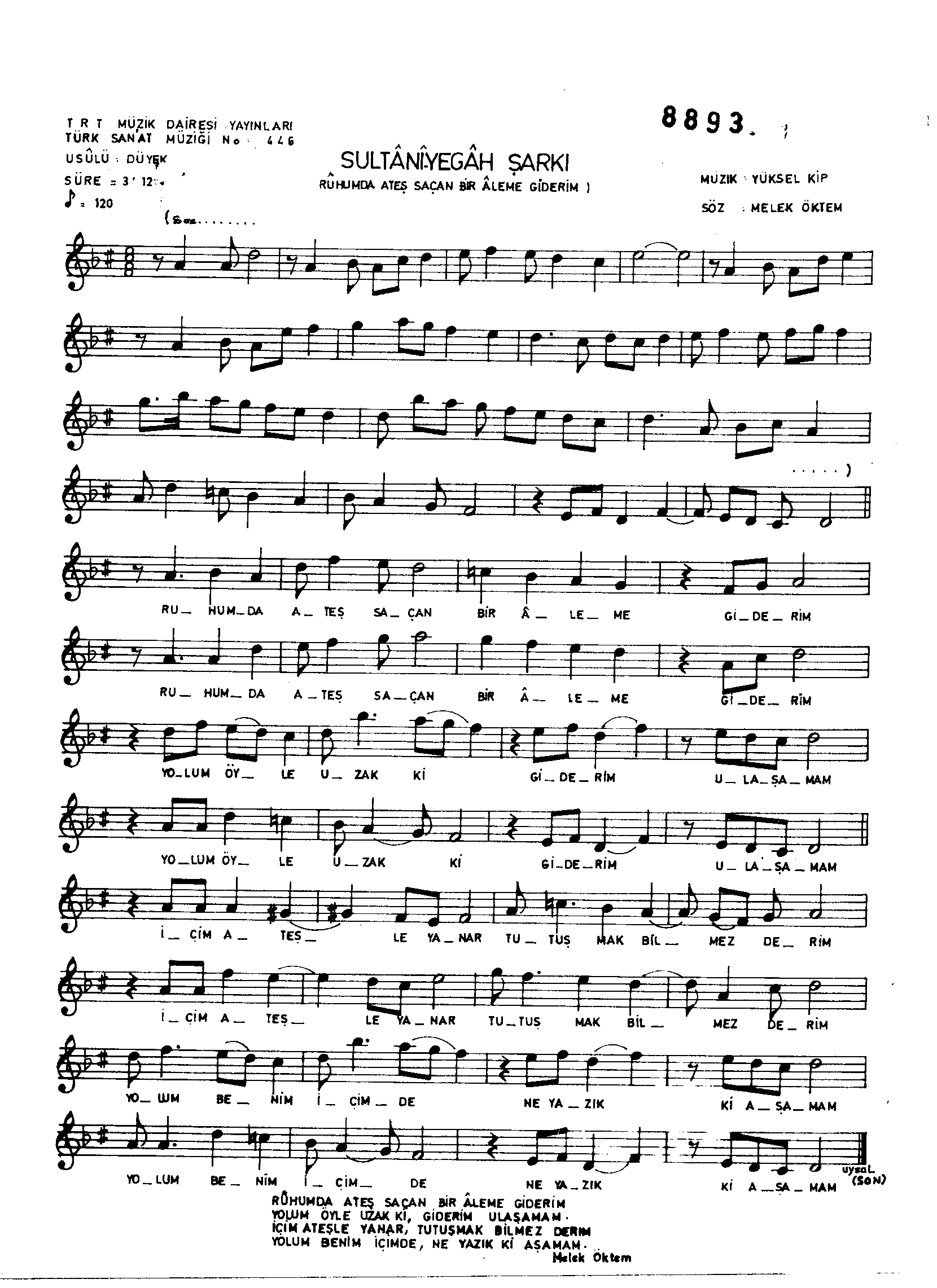 Sarki Adi: Rûhumda ateş saçan bir âleme giderim