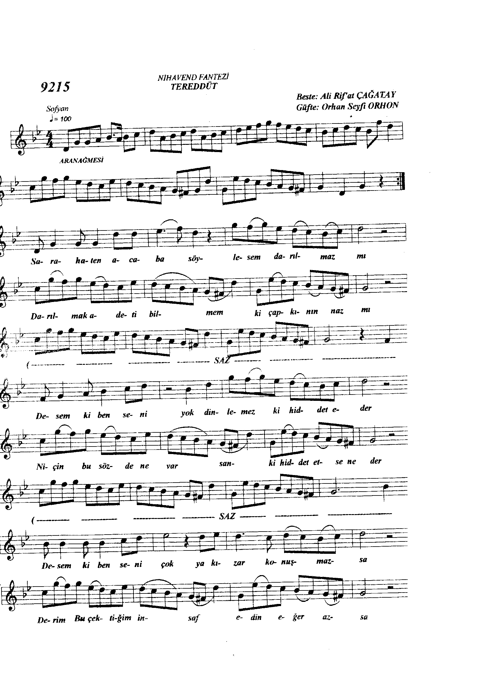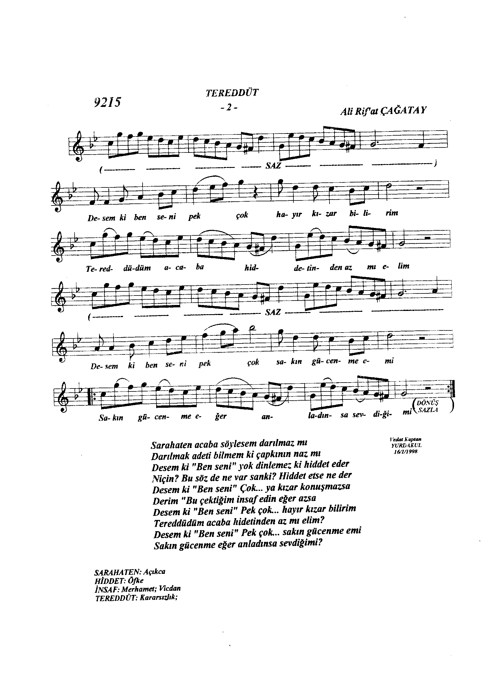 Sarki Adi: Sarâhaten acaba söylesem darılmaz mı (TEREDDÜT)