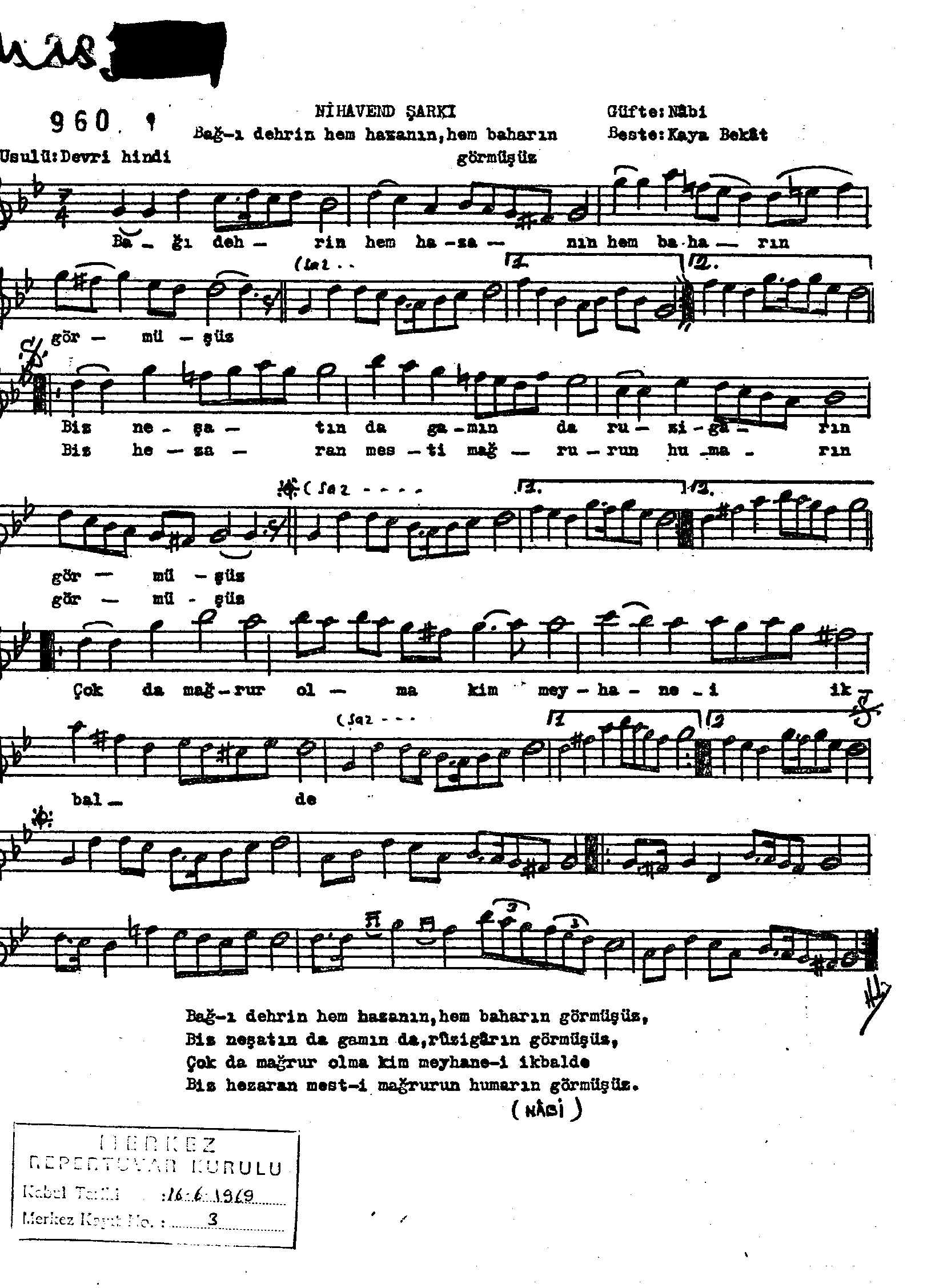 Sarki Adi: Bağ-ı dehrin hem hazânın hem bahârın görmüşüz